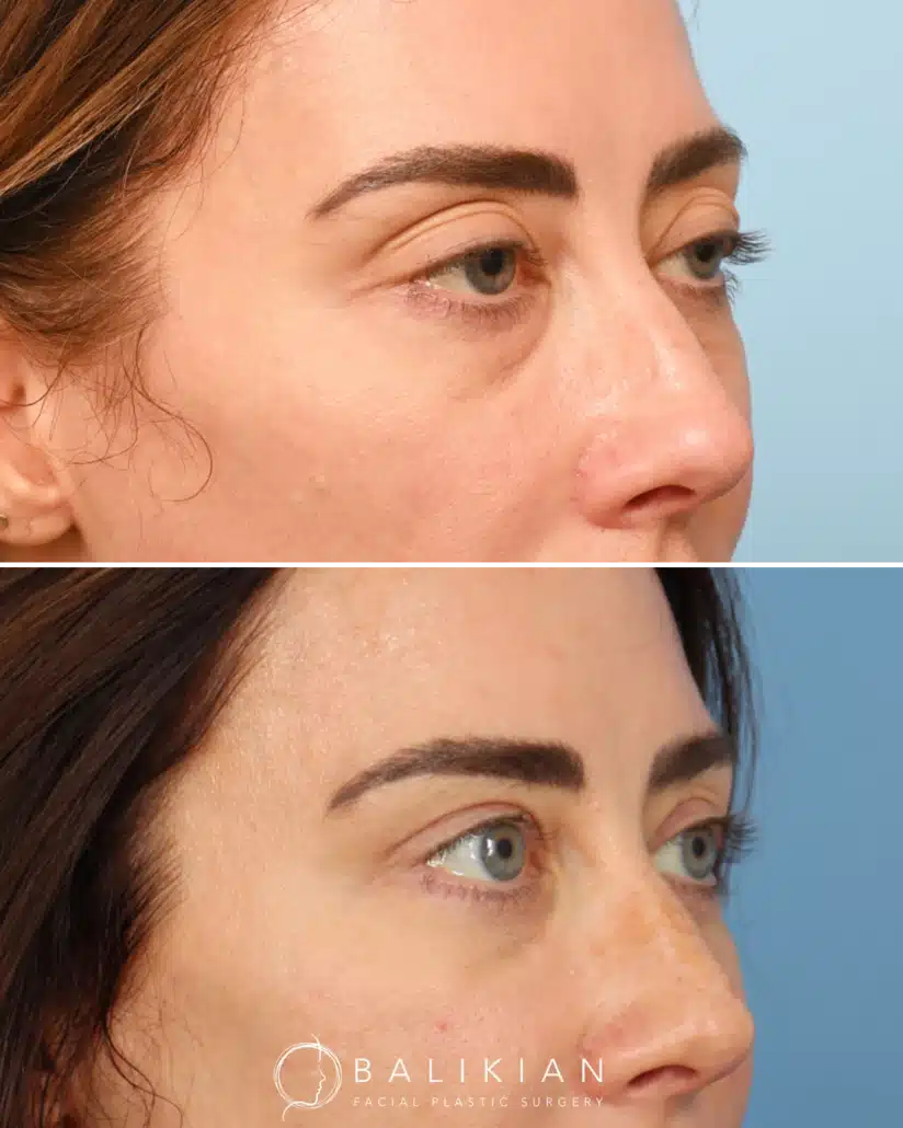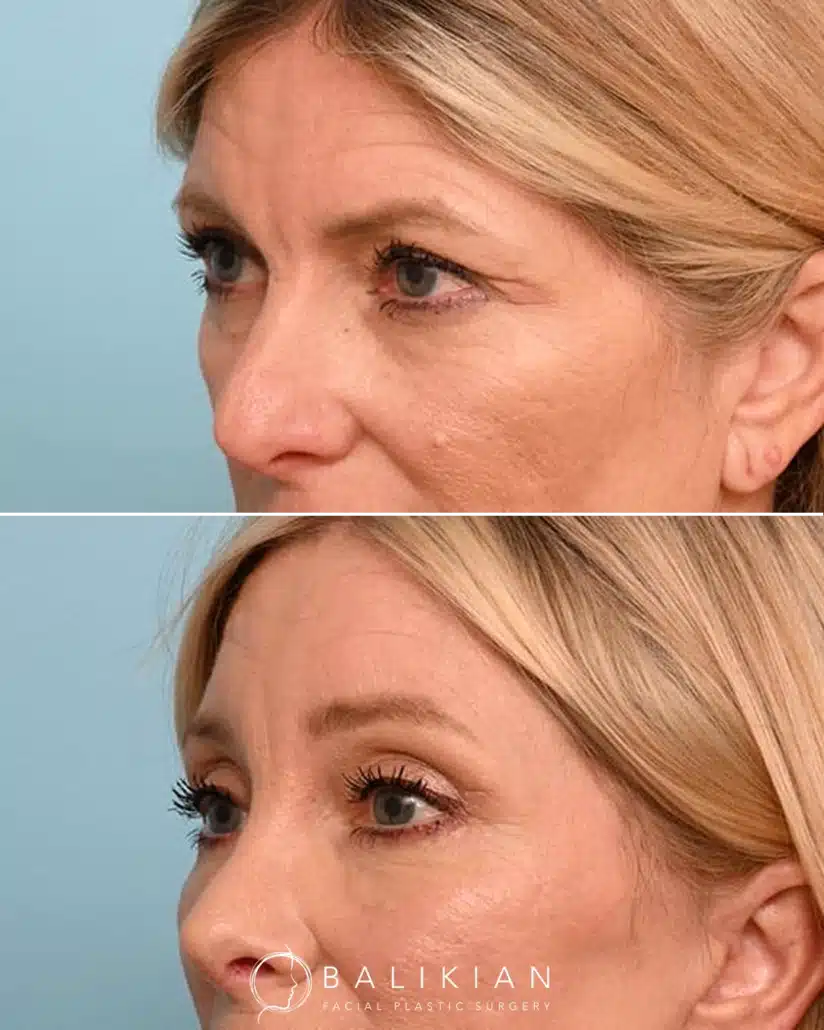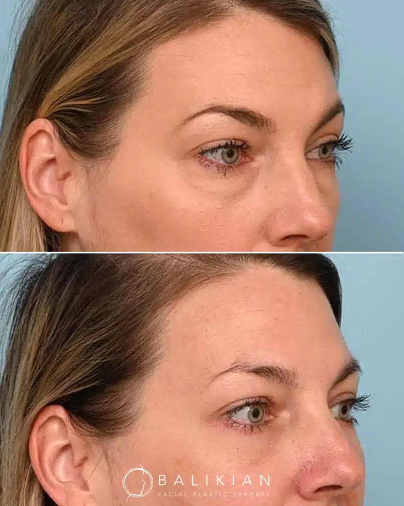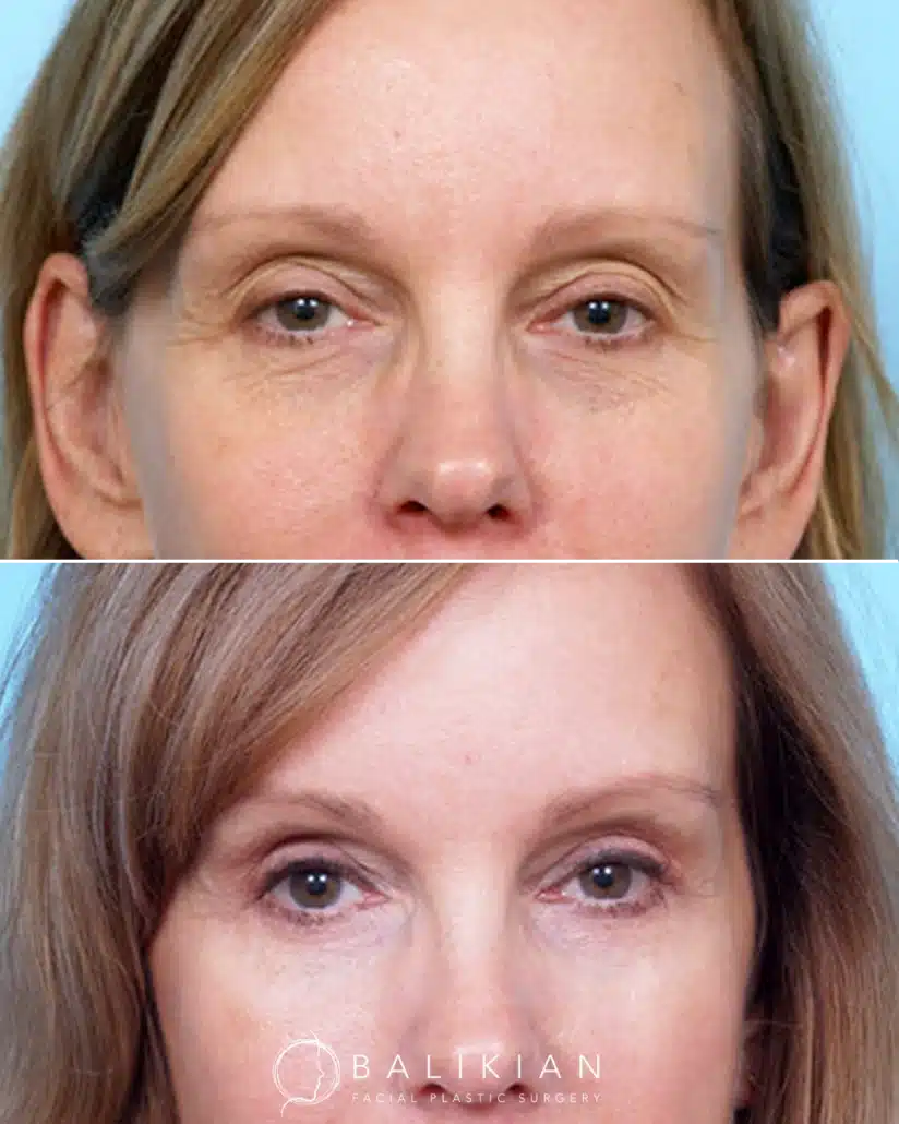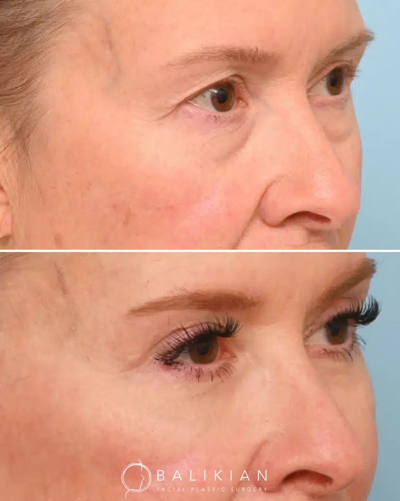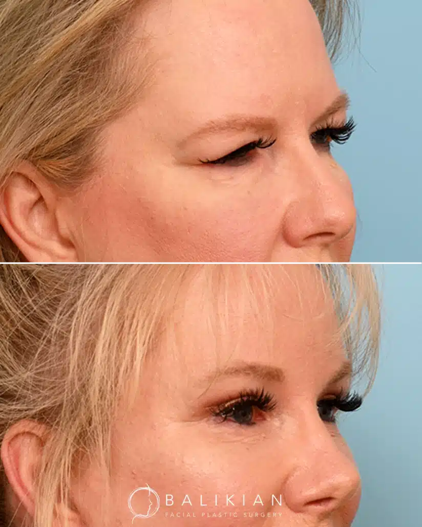 Early changes can be seen within two weeks as swelling and bruising fade. As Dr. Balikian often tells patients, results continue to refine with each passing month. By the time tissues have fully settled, the eyes look rested, youthful and naturally in balance with the rest of the face.