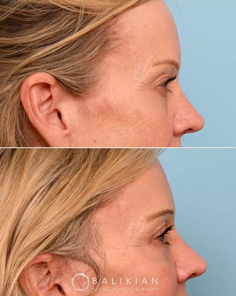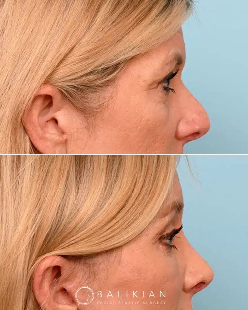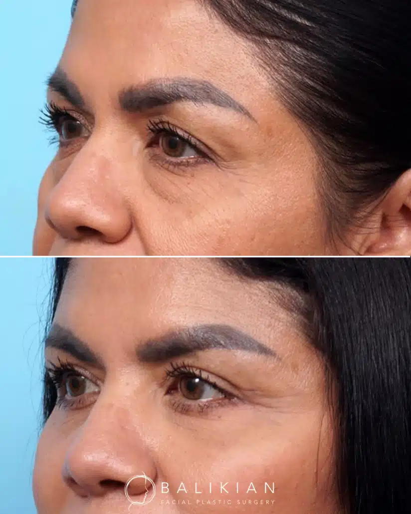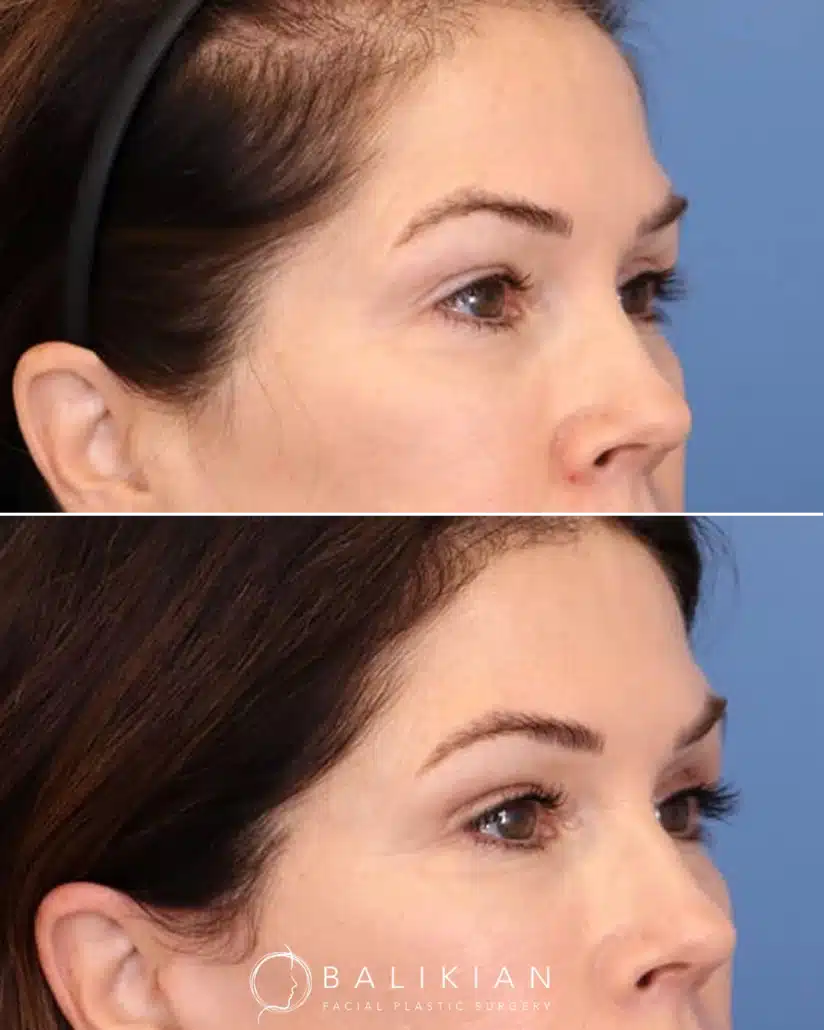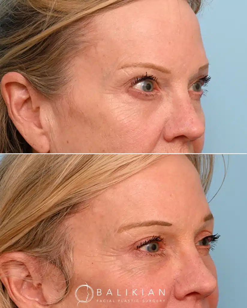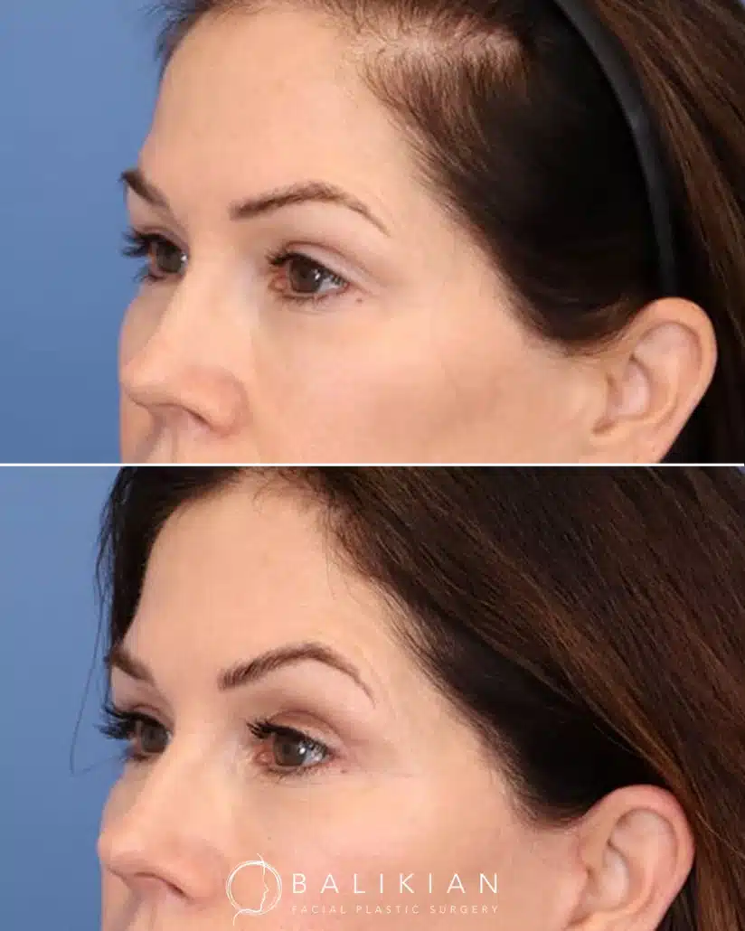 Early changes can be seen within two weeks as swelling and bruising fade. As Dr. Balikian often tells patients, results continue to refine with each passing month. By the time tissues have fully settled, the eyes look rested, youthful and naturally in balance with the rest of the face.