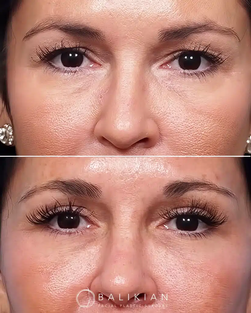 Early changes can be seen within two weeks as swelling and bruising fade. As Dr. Balikian often tells patients, results continue to refine with each passing month. By the time tissues have fully settled, the eyes look rested, youthful and naturally in balance with the rest of the face.