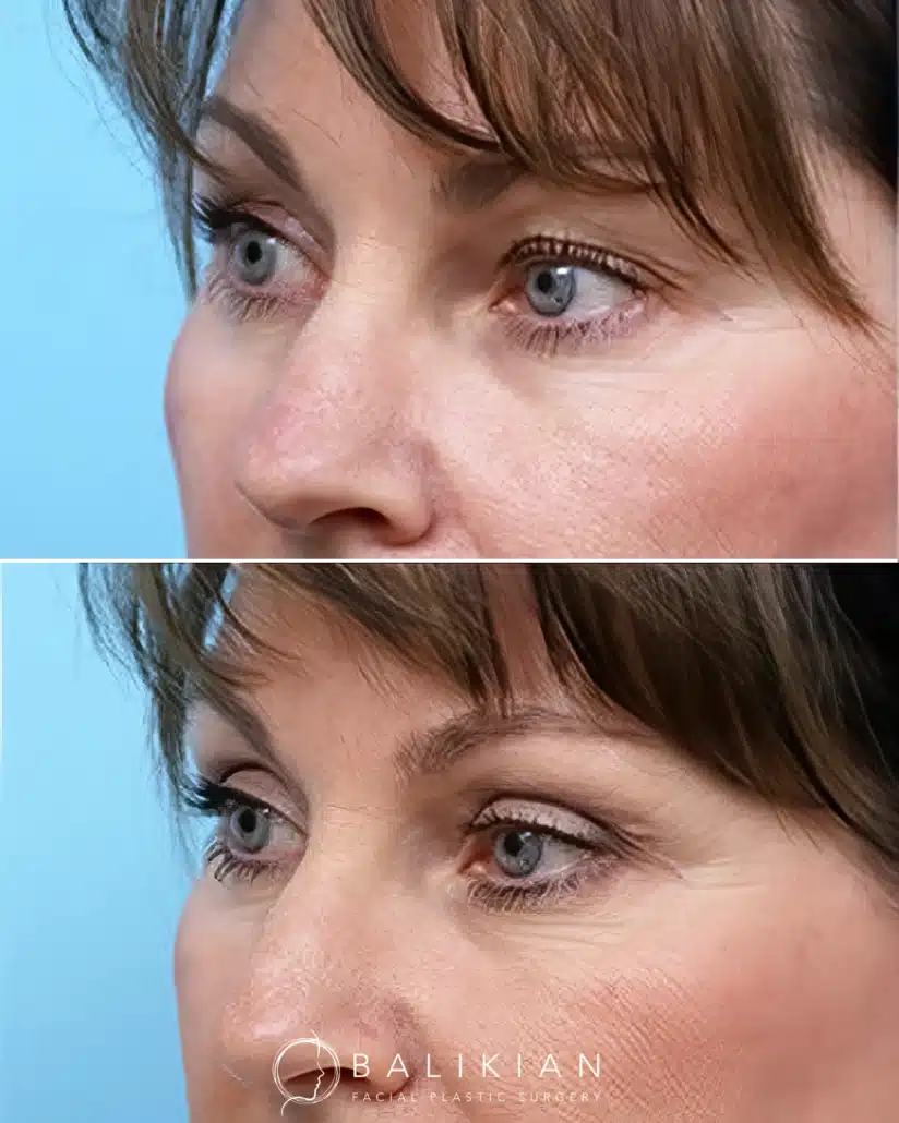 The goal is to keep your natural eye shape. Dr. Balikian removes heaviness and smooths puffiness while preserving expression so results look like you, only more rested.