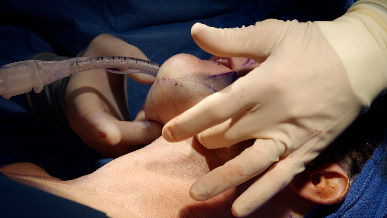 Neck lift incisions are typically placed around the ears and sometimes under the chin where they can blend with natural creases. Early on, scars look pink and firm.